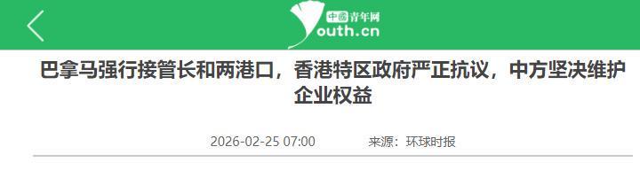 中国青年网:巴拿马强行接管长和两港口,香港特区政府严正抗议,中方坚决维护企业权益